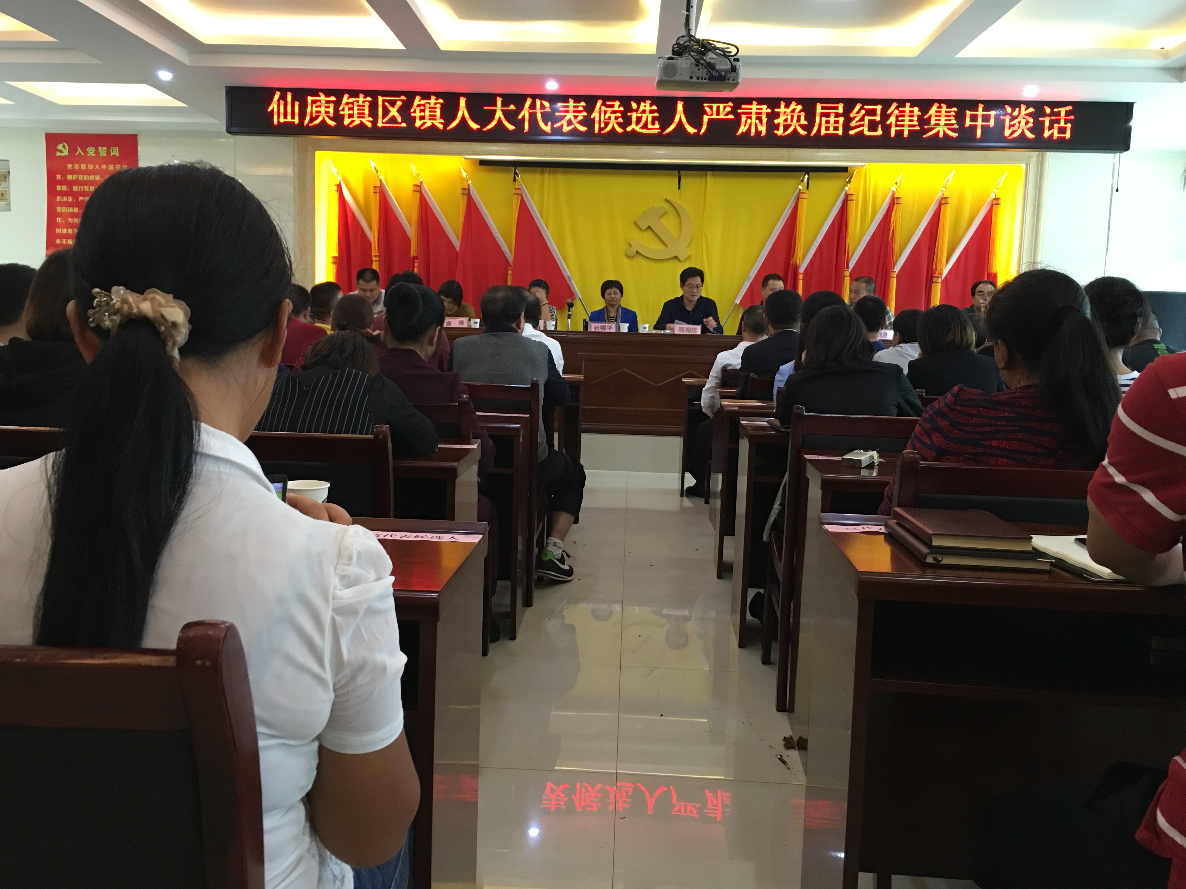 为进一步严肃换届纪律,10月21日下午,仙庾镇对辖区内全体区镇人大代表候选人及各选区负责人进行了严肃换届纪律集中谈话,区人大副主任张赐华出席会议并讲话。