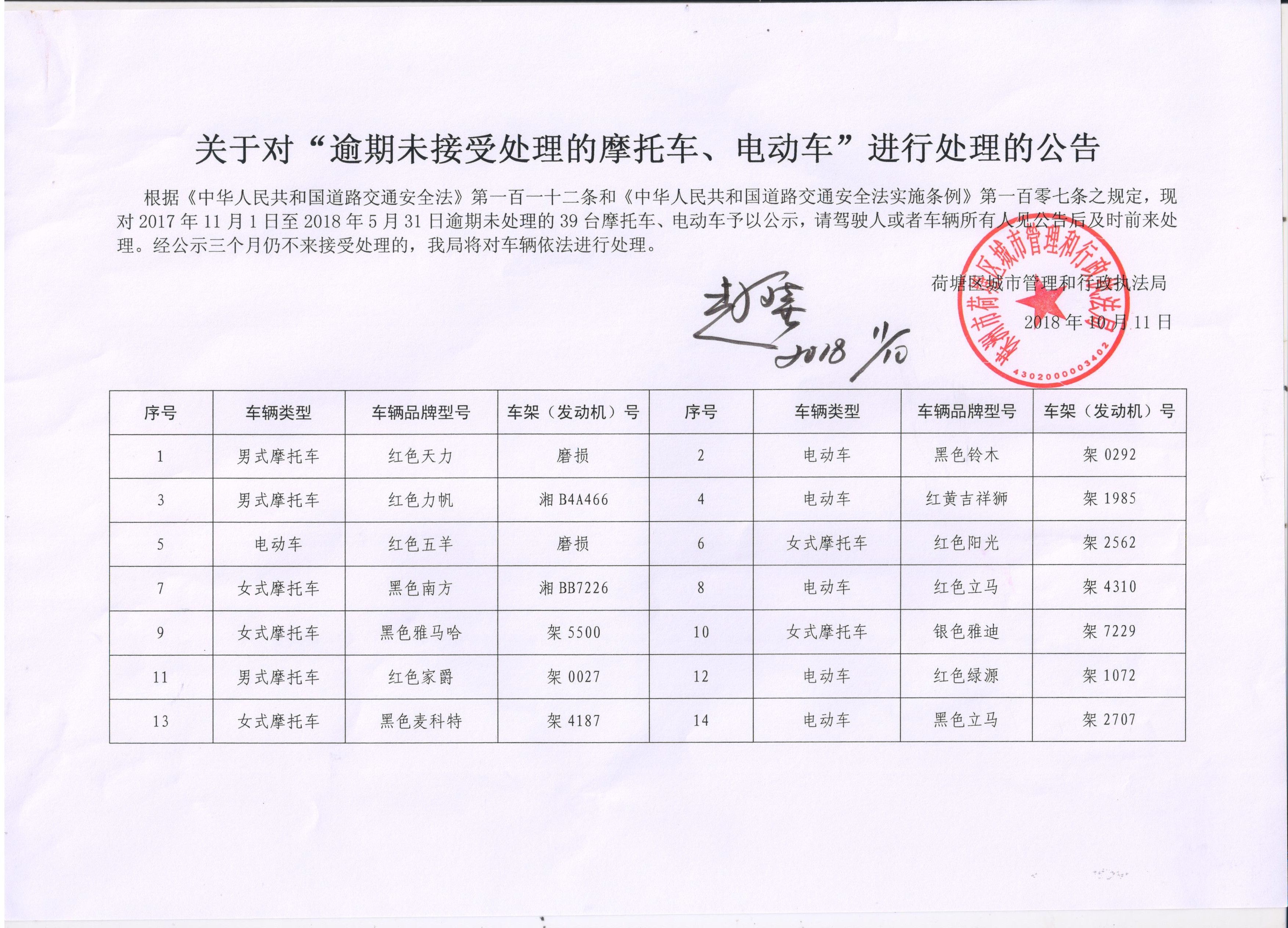 关于对“逾期未接受处理的摩托车、电动车”进行处理的公告
