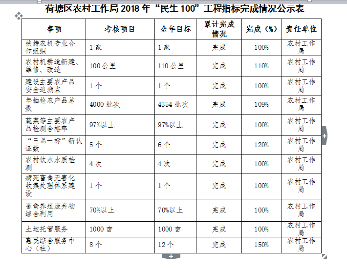 按照株洲市荷塘区人力资源和社会保障局及统计局要求,现将我局所承办的“民生100”工程实事所有项目(附后)完成情况予以公示。