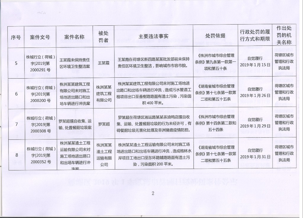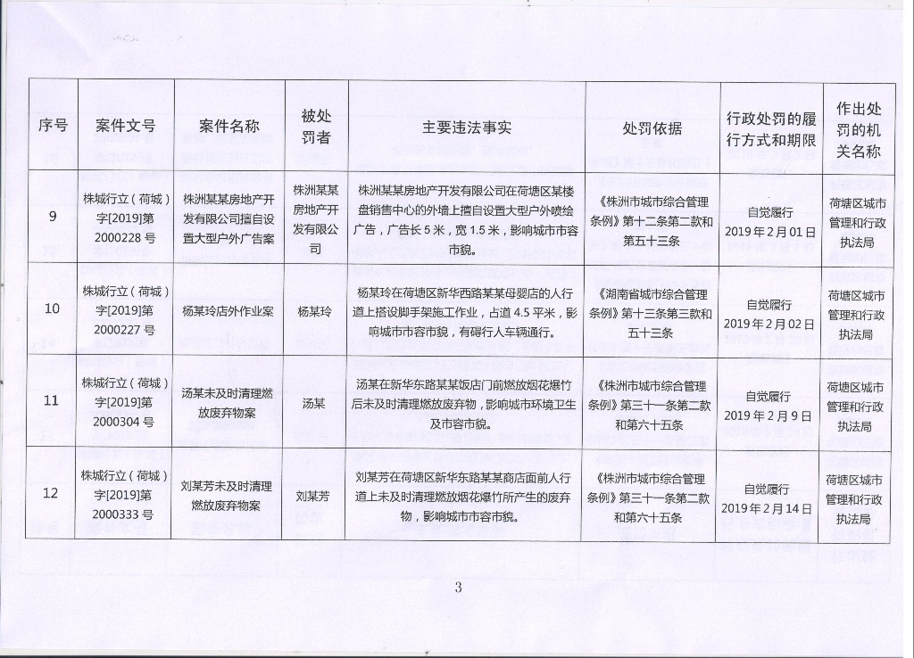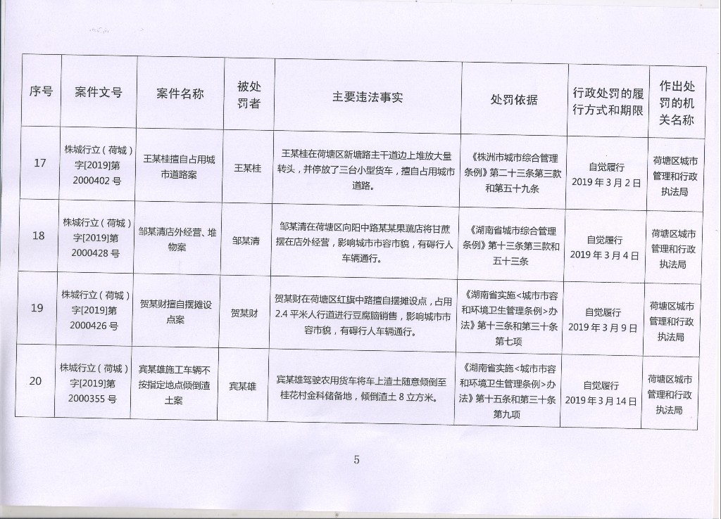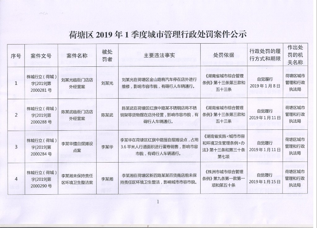荷塘区2019年1季度城市管理行政处罚案件公示