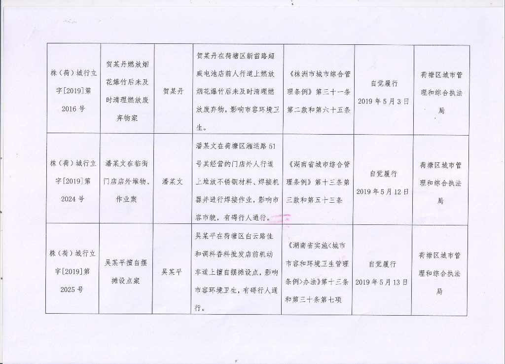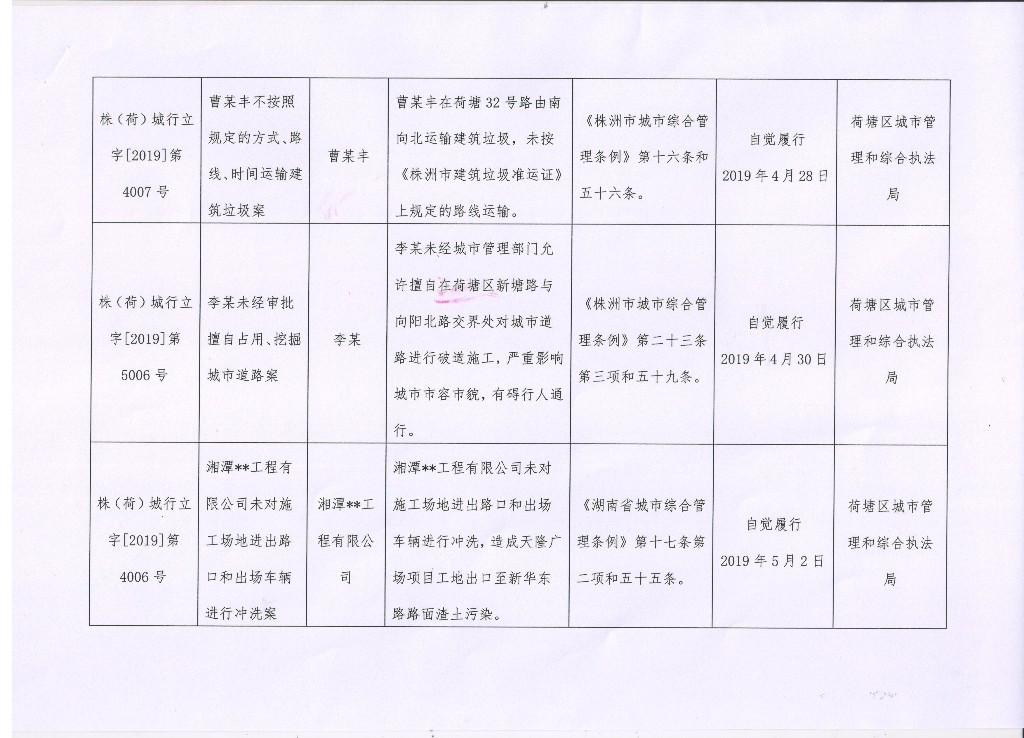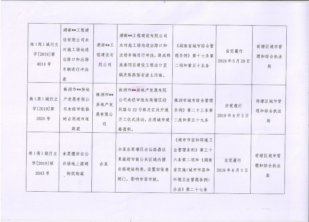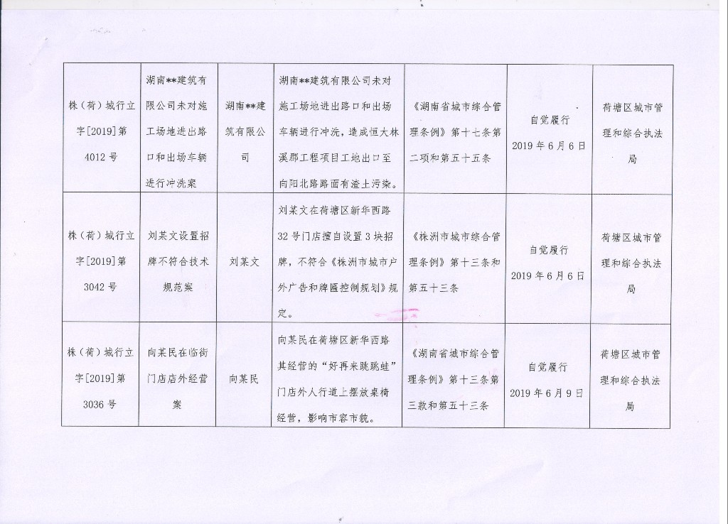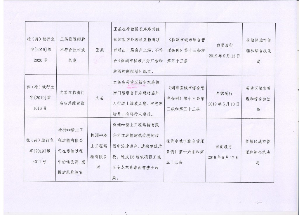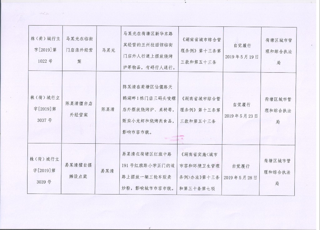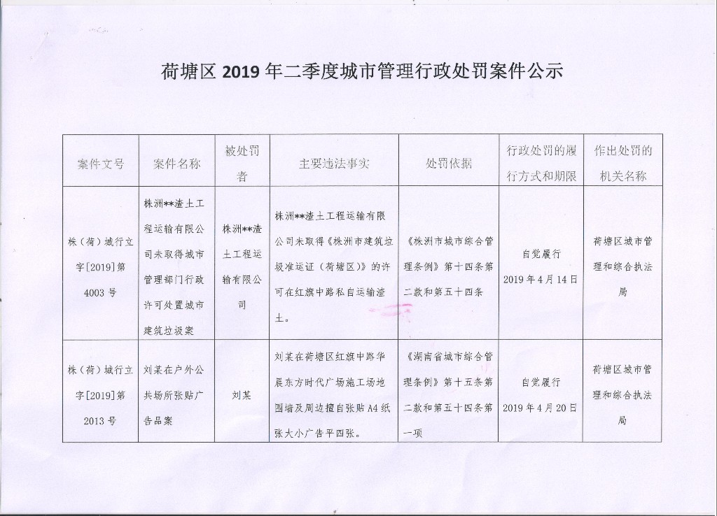 荷塘区2019年二季度城市管理行政处罚案件公示