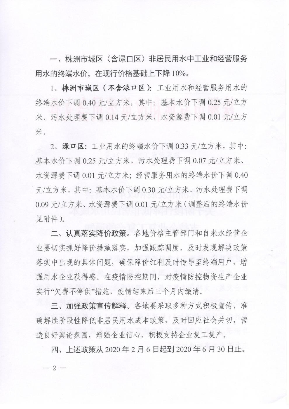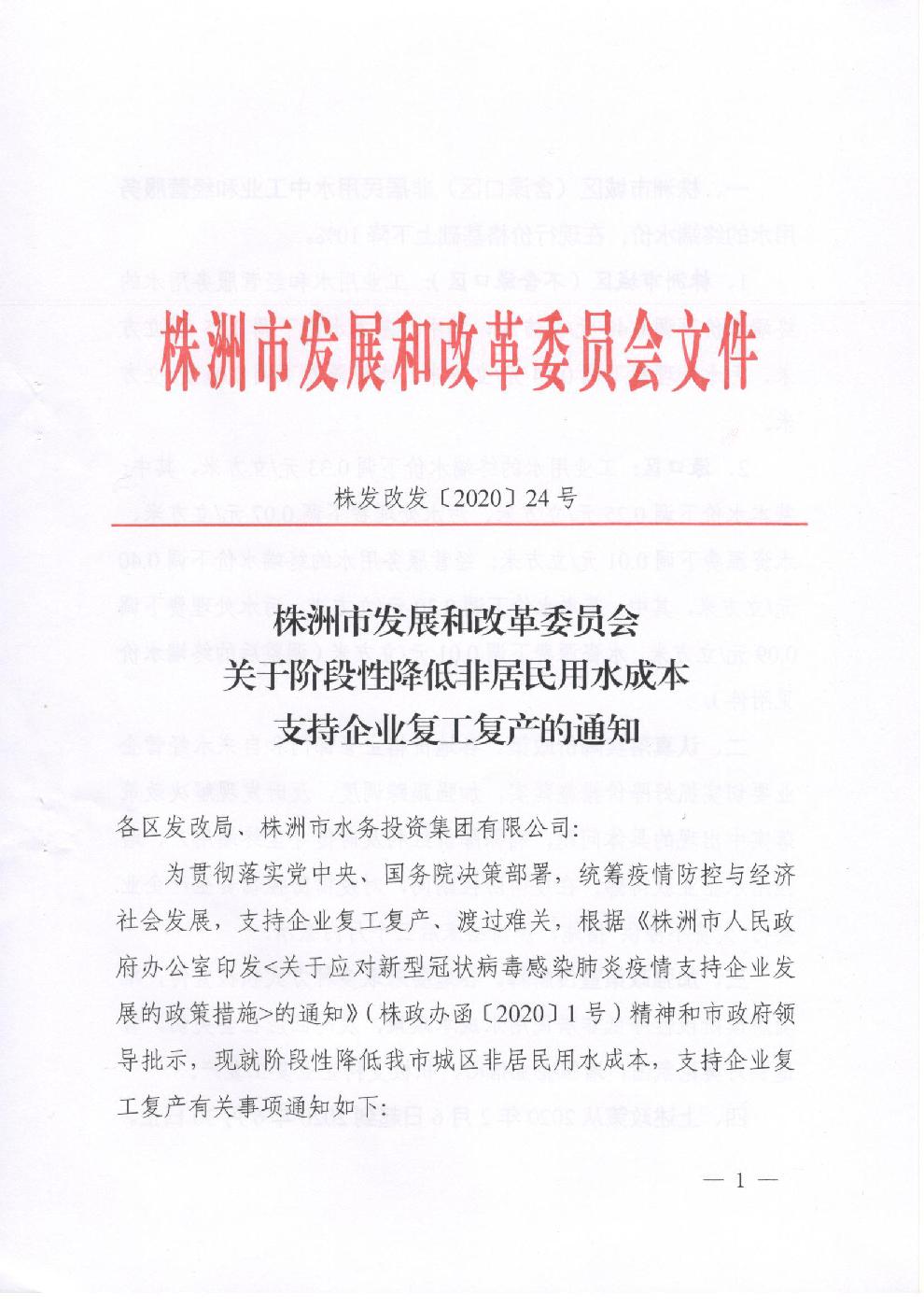 关于阶段性降低非居民用水成本支持企业复工复产的通知