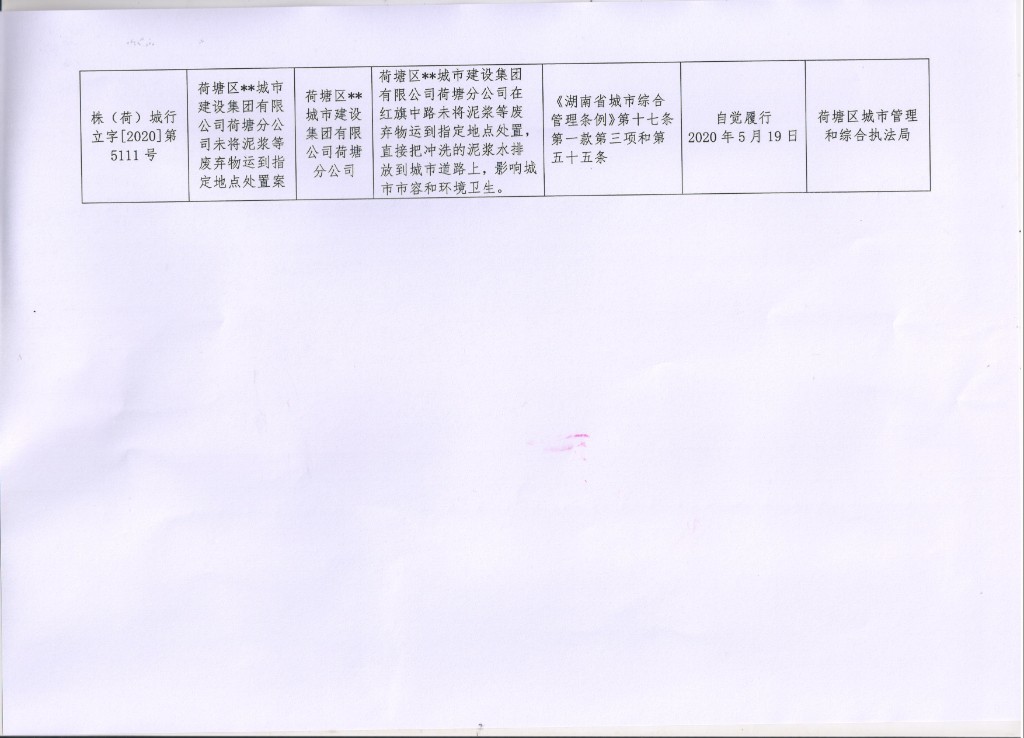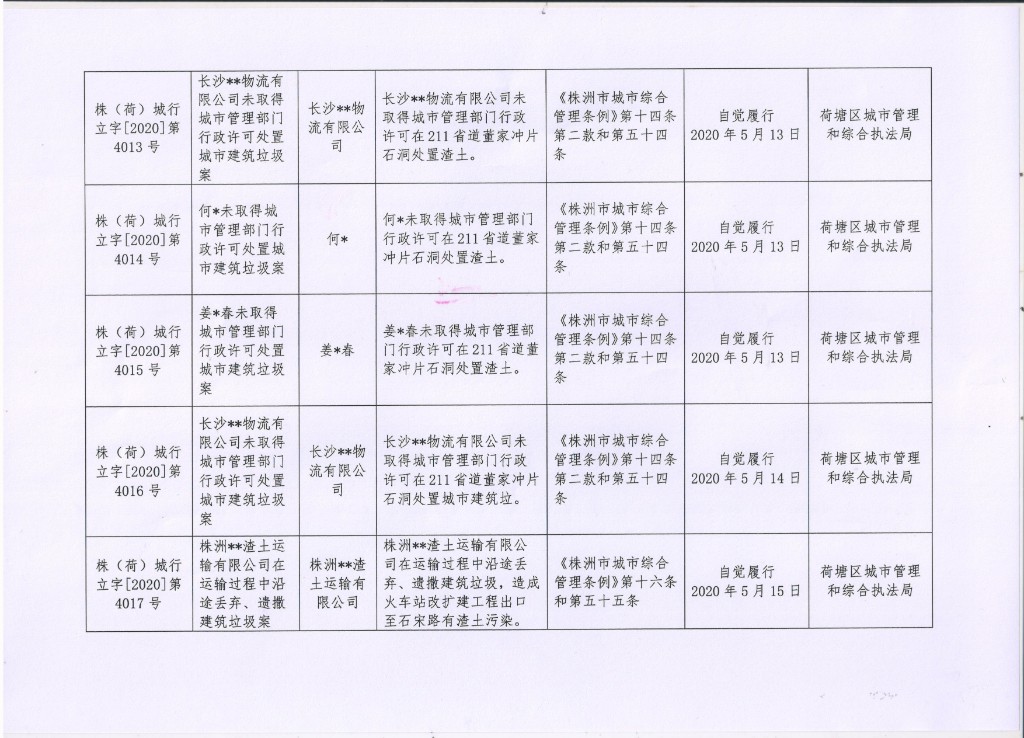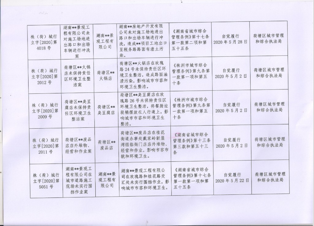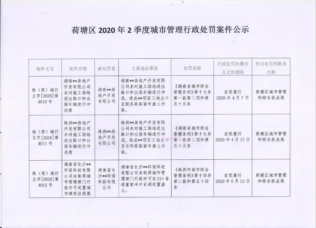 荷塘区2020年2季度城市管理行政处罚案件公示