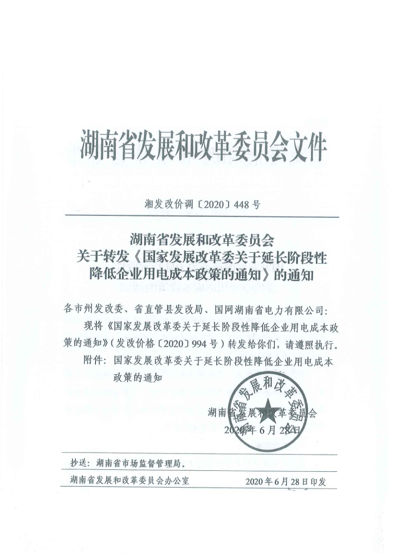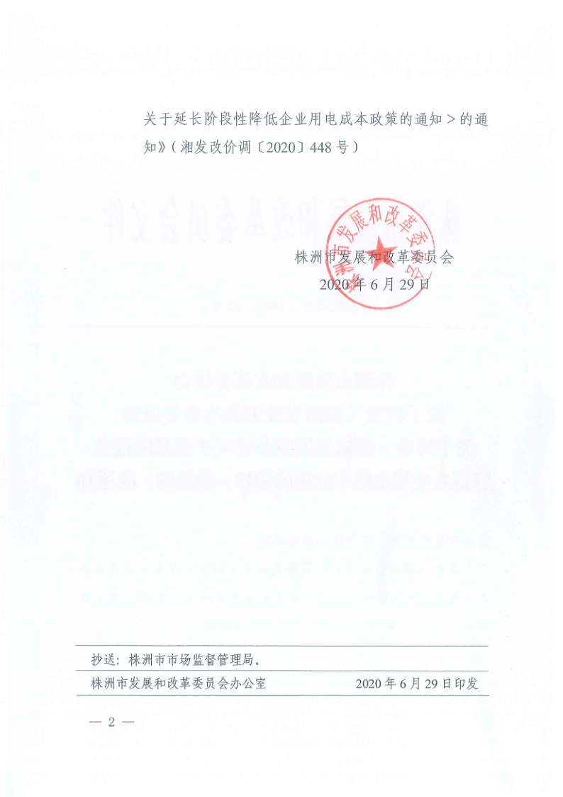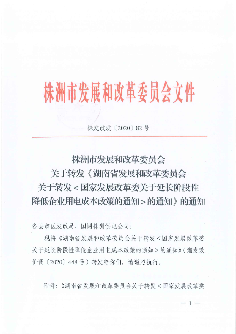 延长阶段性降低企业用电成本(株发改发〔2020〕82)