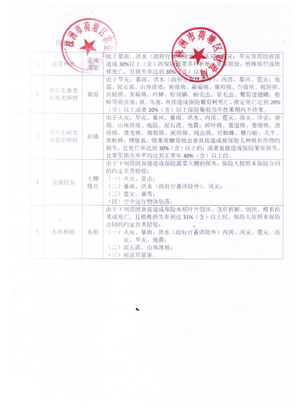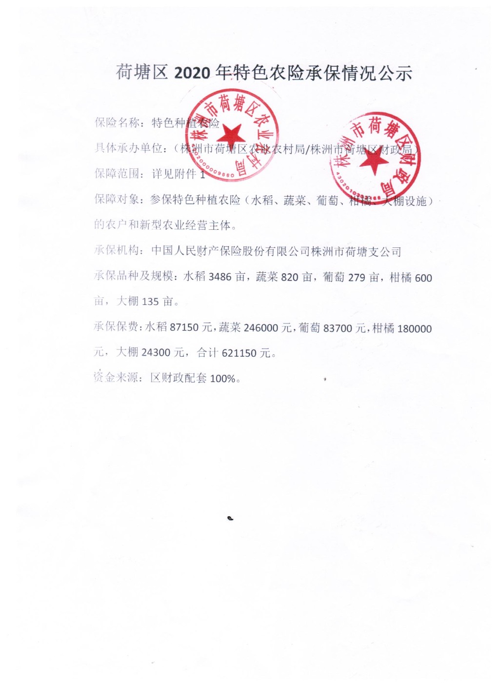 荷塘区2020年特色农险承保情况公示