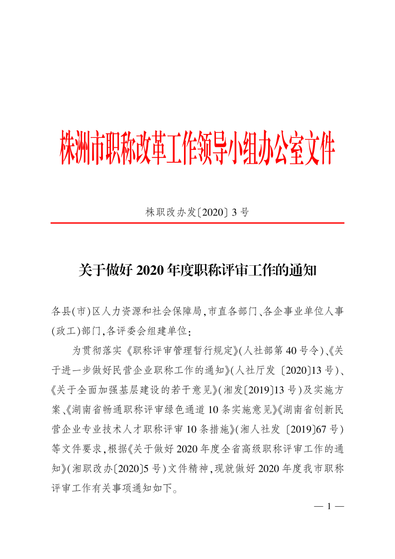 关于做好2020年度职称评审工作的通知(株职改办发〔2020〕3号)