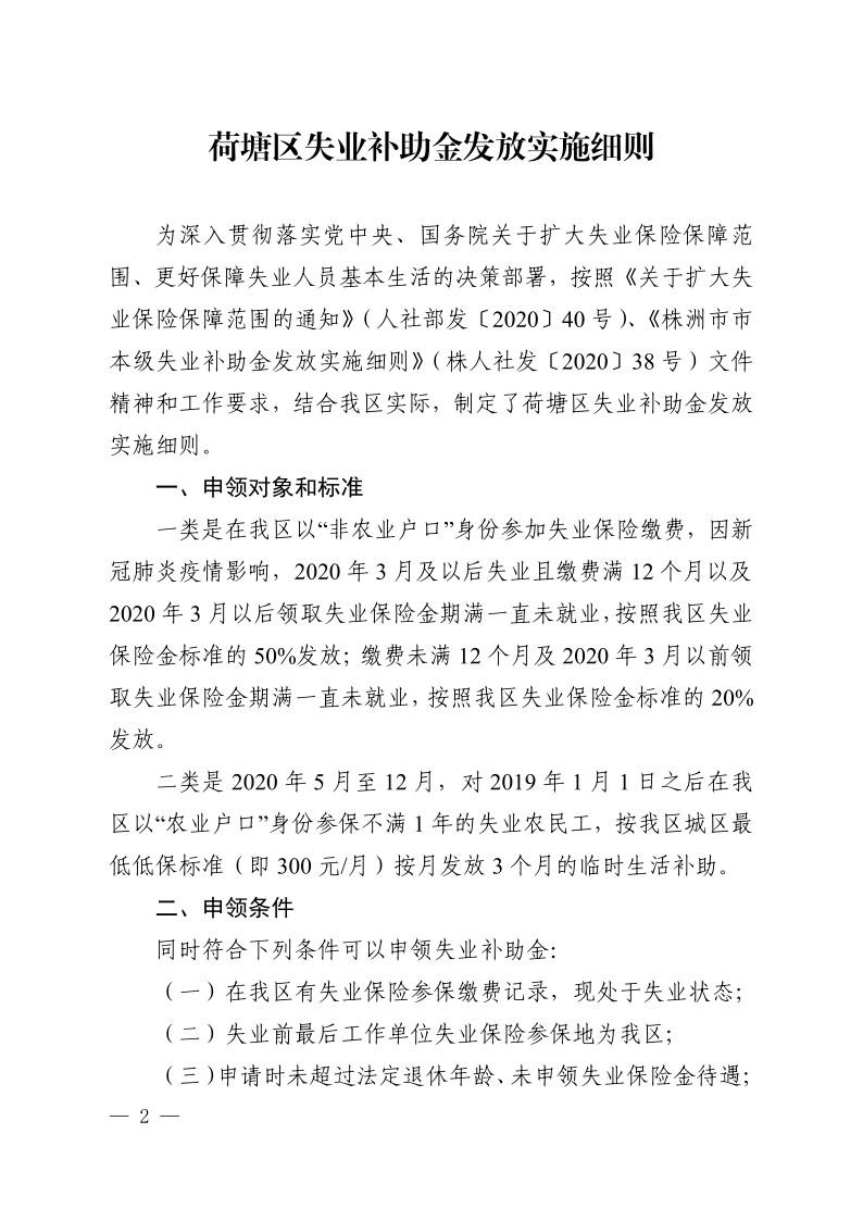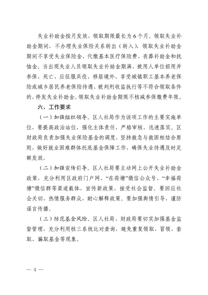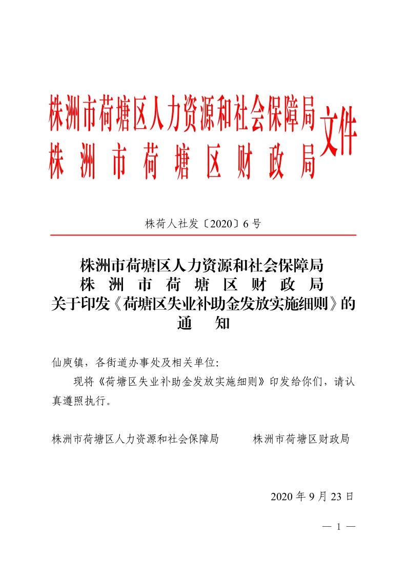 关于印发《荷塘区失业补助金发放实施细则》的通知
