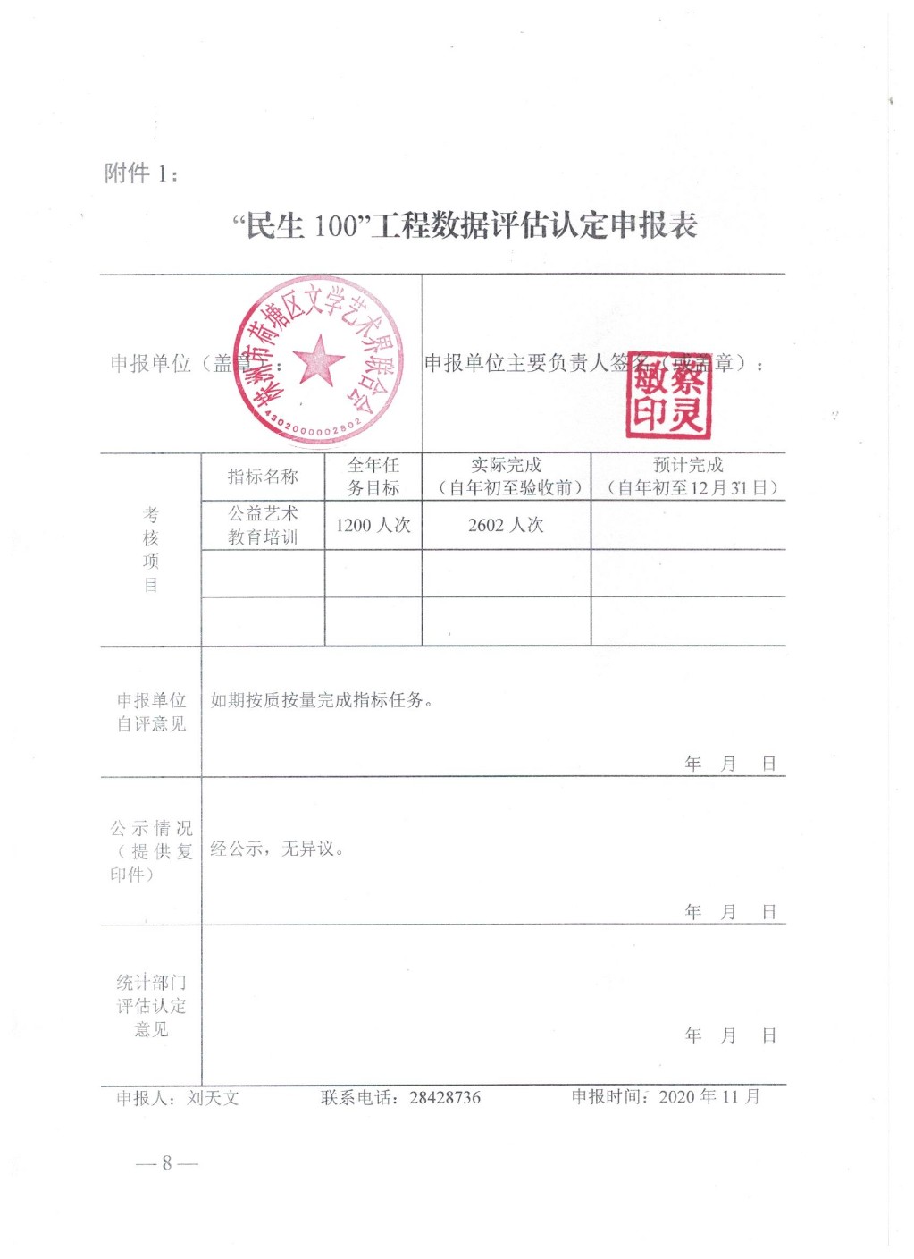 按照株洲市统计局《关于认真做好2020年全市“民生100”工程考核数据评估认定工作的通知》(株统计通〔2020〕86号)要求,现将本部门承办的2020年“民生100”工程完成情况予以公示。