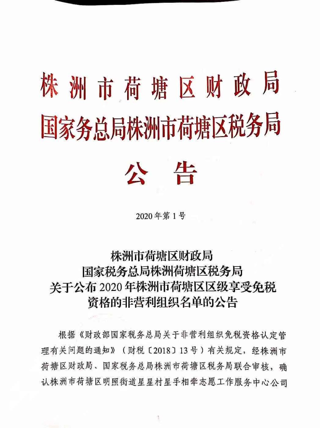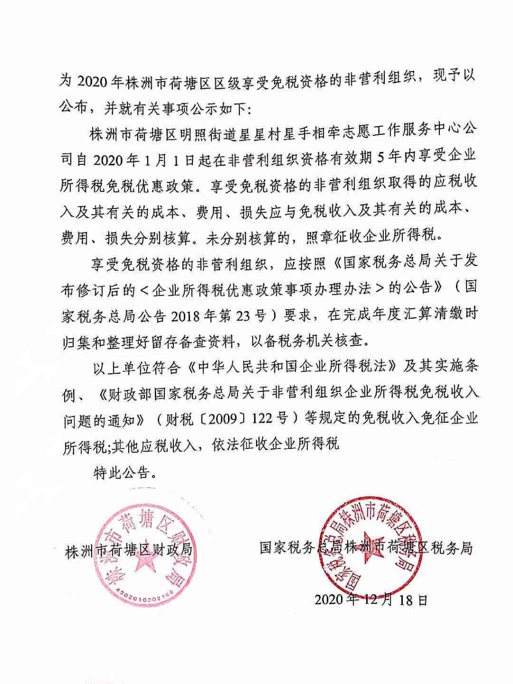 关于公布2020年株洲市荷塘区区级享受免税资格的非营利组织名单的公告