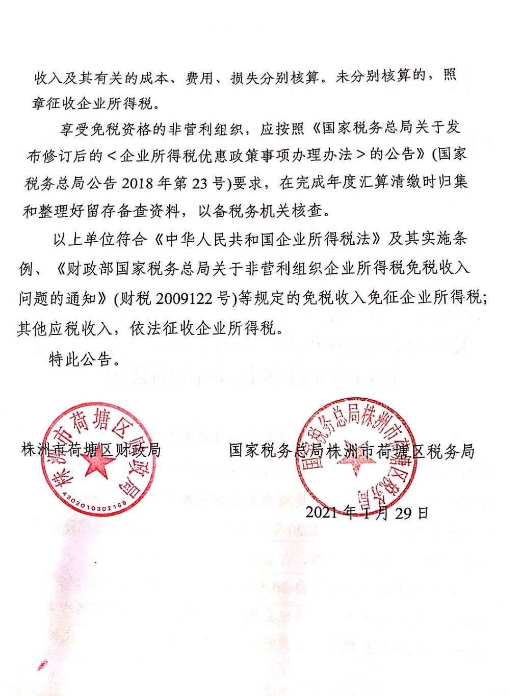 关于公布2020年株洲市荷塘区区级享受免税资格的非营利组织名单的公告