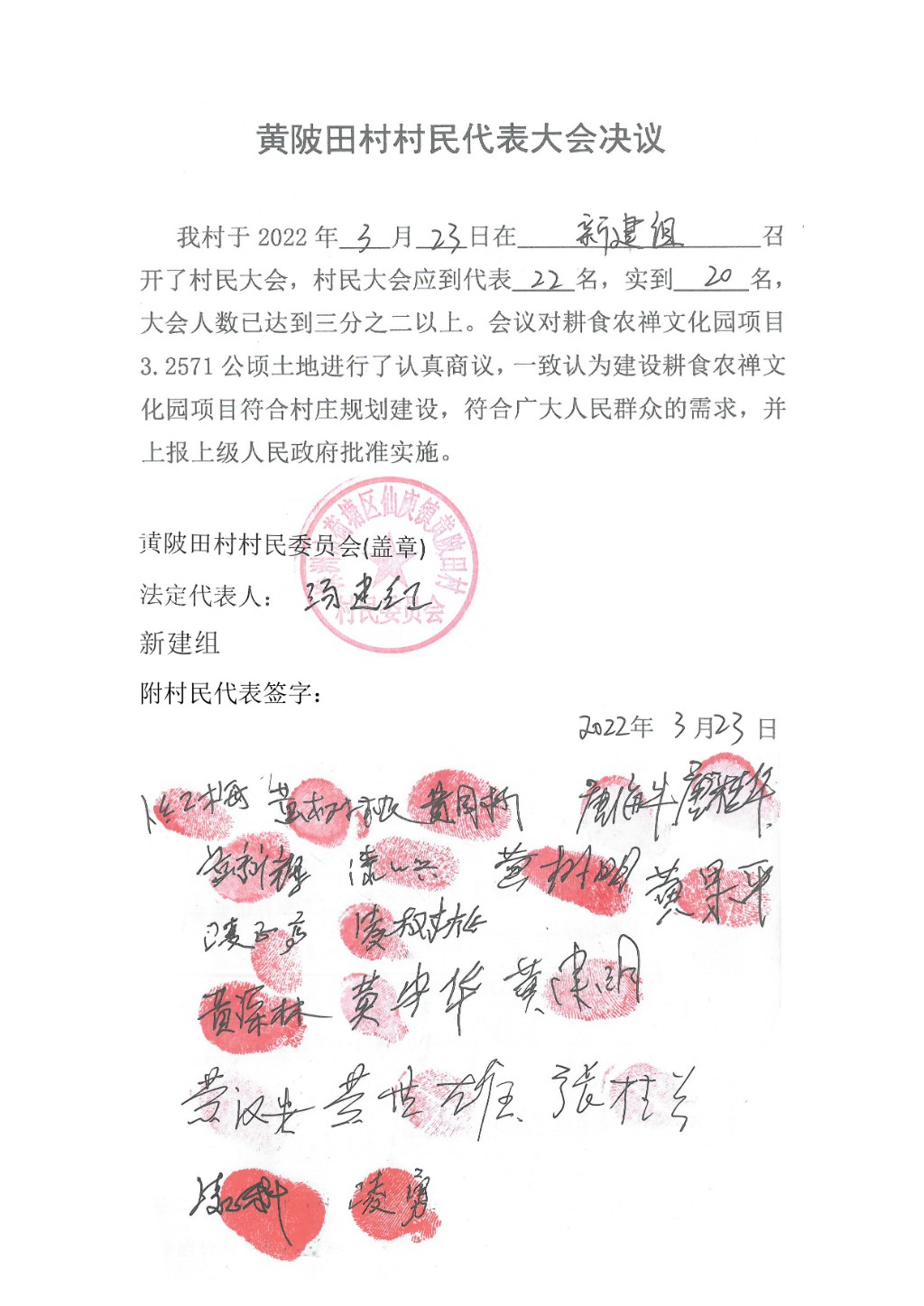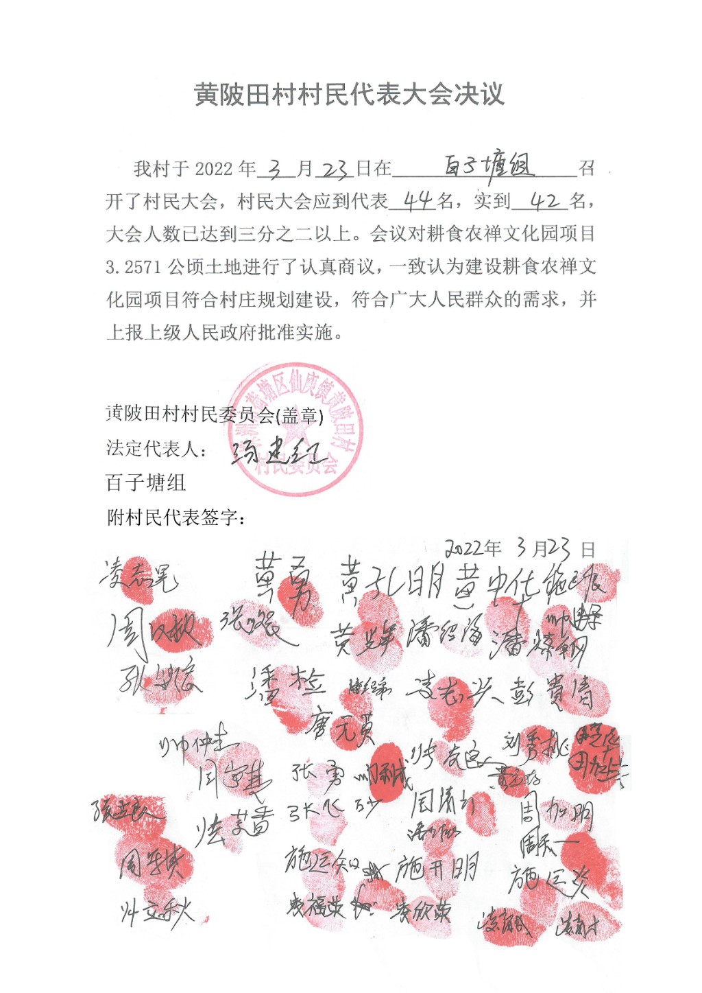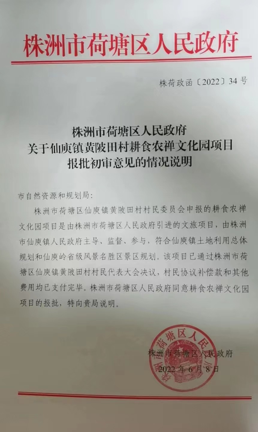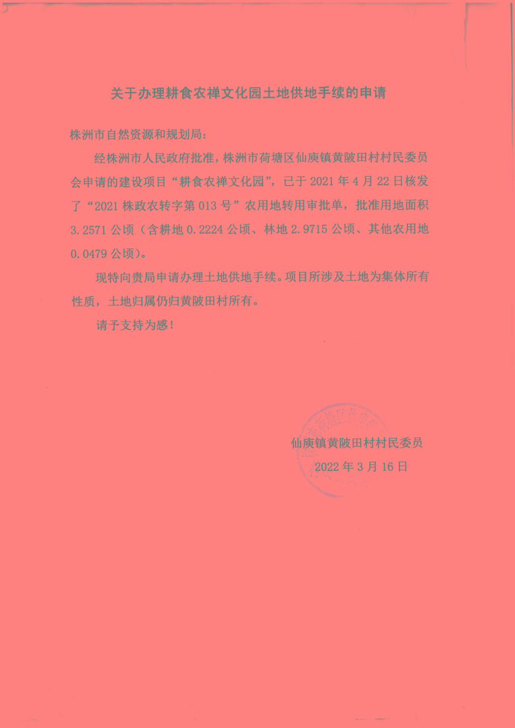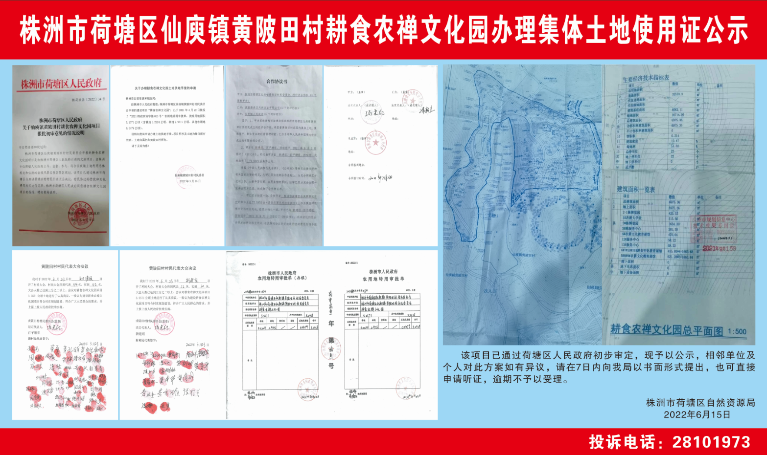 株洲市荷塘区仙庾镇黄陂田村耕食农禅文化园项目办理集体土地使用证公示