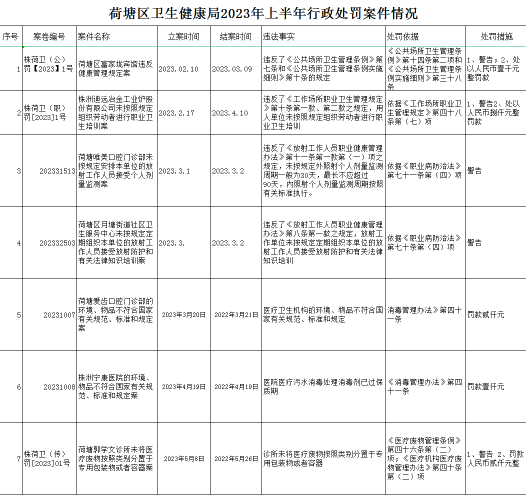 荷塘区卫生健康局2023年上半年行政处罚案件公示