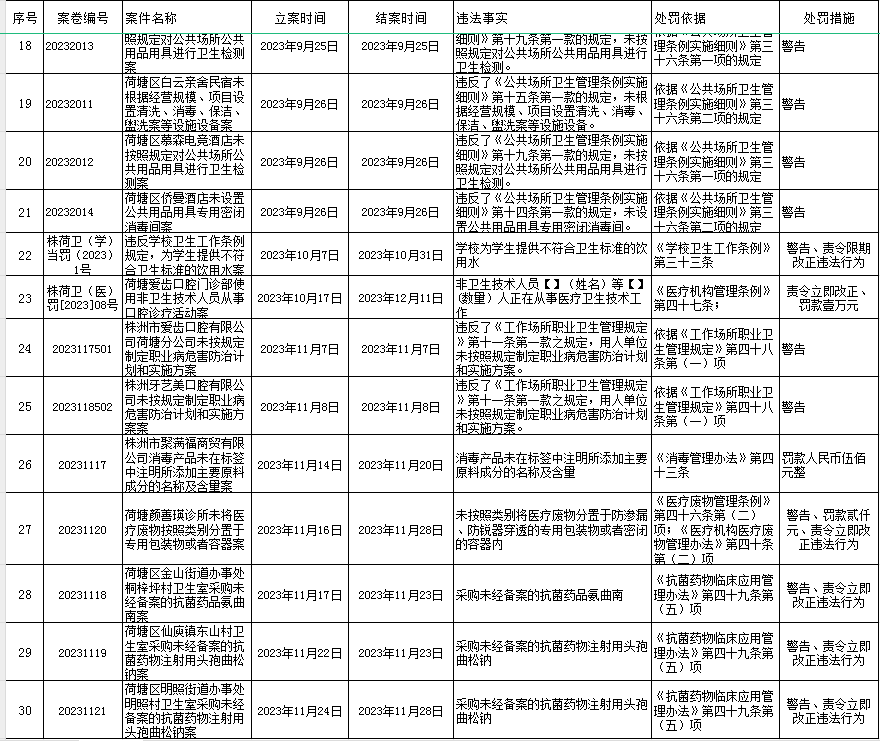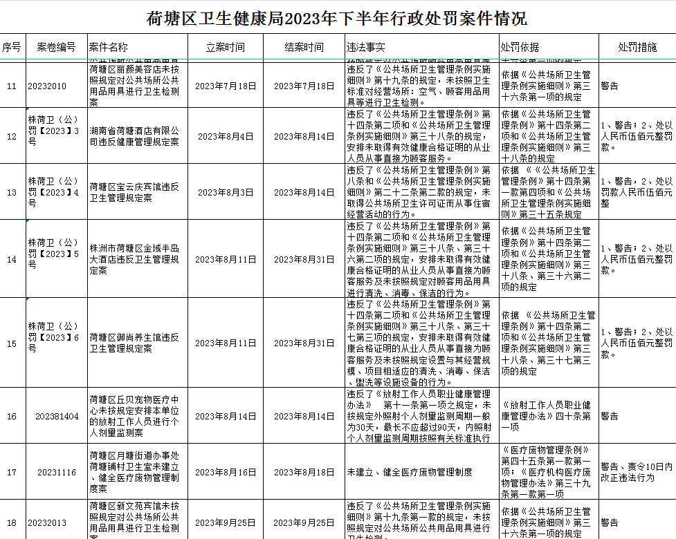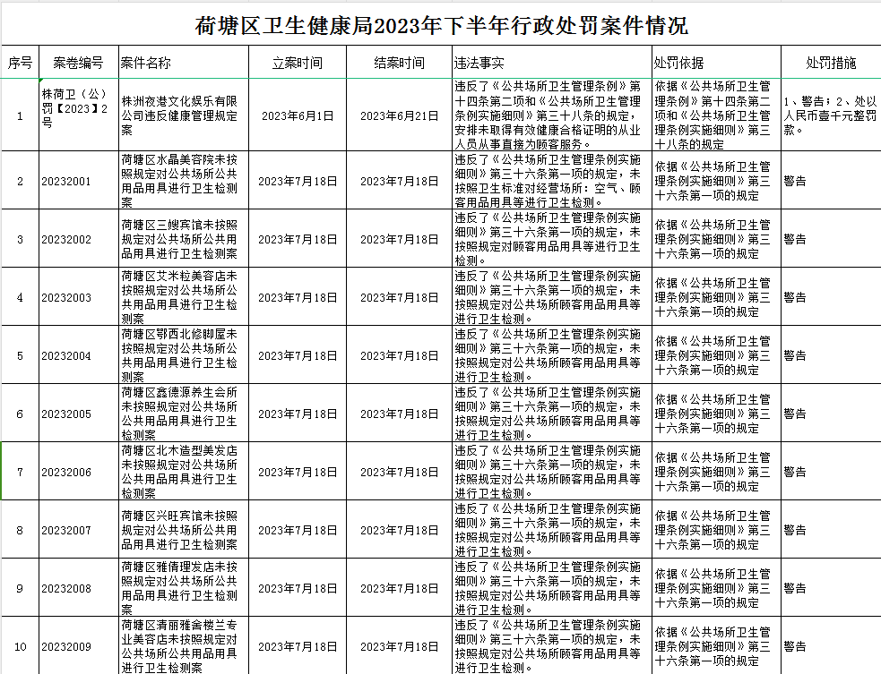 荷塘区卫生健康局2023年下半年行政处罚案件公示