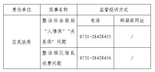 为贯彻落实群众身边不正之风和腐败问题集中整治工作,广泛听取群众意见,受理群众投诉,接受群众监督,现将荷塘区民政局整治社会救助“人情保”“关系保”问题、整治殡仪馆乱收费问题监督投诉举报方式公布如下: