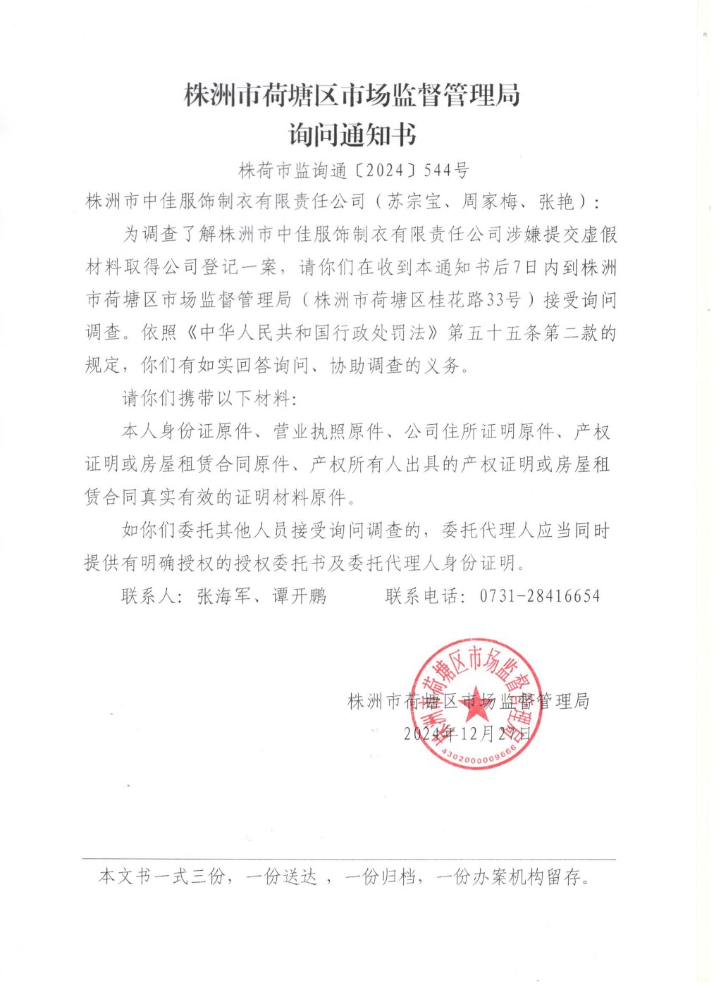 株洲市荷塘区市场监督管理局询问通知书 株荷市监询通〔2024〕544号