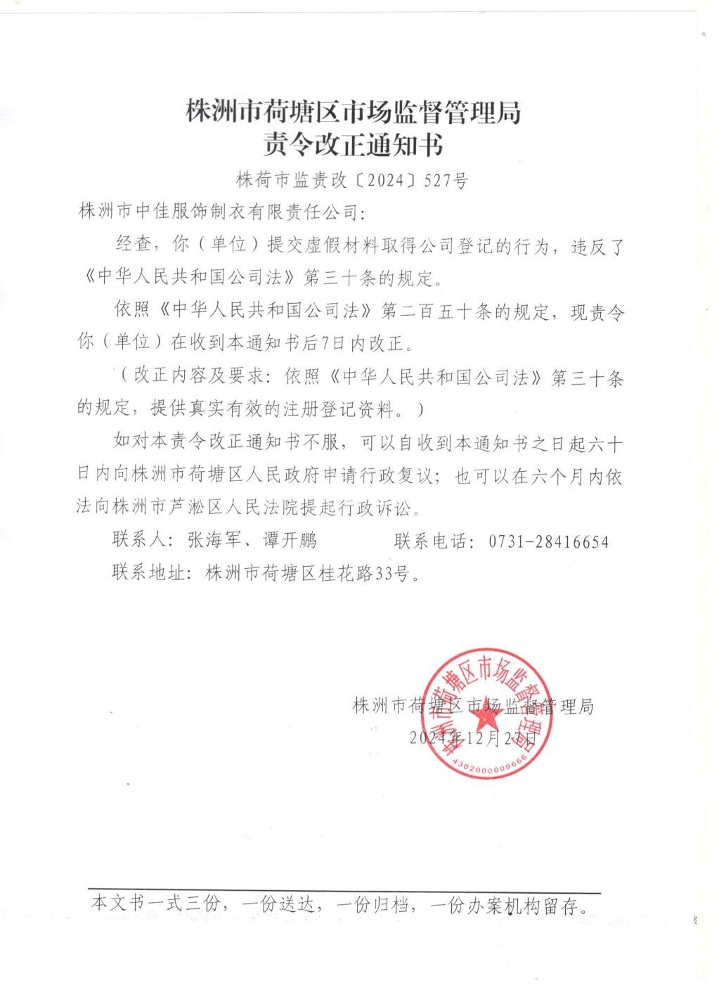株洲市荷塘区市场监督管理局责令改正通知书 株荷市监责改〔2024〕527号