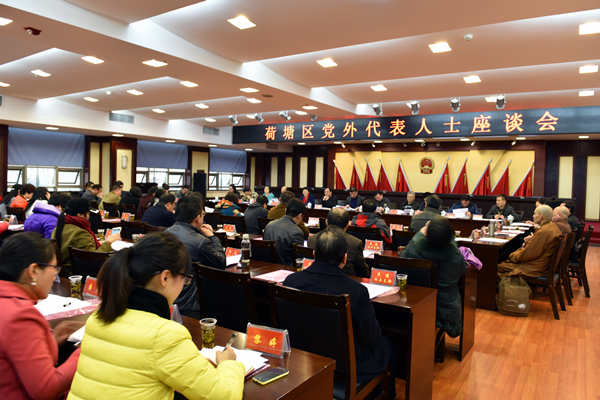 1月5日下午,荷塘区召开全区党外代表人士座谈会。区领导何恒仁、刘伟、张赐华、喻秋良、廖山、肖宏琳、冯晓、方芳出席会议。全区各民主党派基层主委,非公经济人士代表,民族宗教界代表人士,港澳台侨海外代表人士,党外干部代表,全区组织、统战系统相关负责人等80余人参加会议。