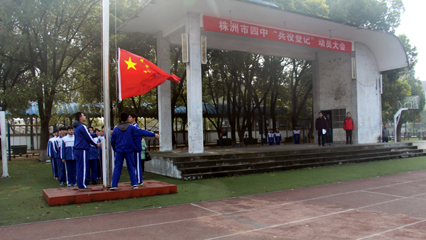 3月14日,荷塘区国防教育宣传走进株洲市第四中学,当天恰逢周一,全校师生在操场集合,在该校升旗仪式之后,荷塘区人武部相关负责人向全校2100余名师生作兵役登记动员讲话,鼓励有志青年携笔从戎锤炼男儿本色,建功军营赤诚报效祖国。同时,解读了兵员征集政策。