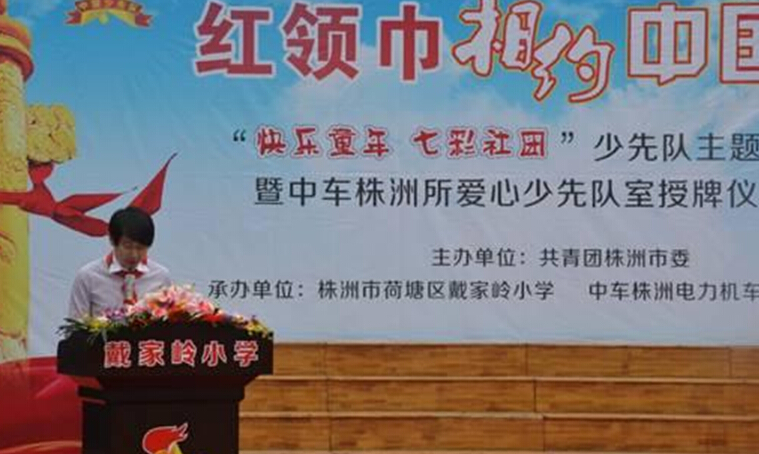 5月24日,株洲市“红领巾相约中国梦”少先队主题队会暨中车株洲所爱心少先队室授牌活动在荷塘区戴家岭小学举行。