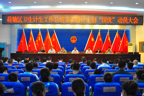 6月8日,荷塘区召开卫计工作总结表彰暨计生创“国优”动员大会,区领导邬凌云、何恒仁、喻秋良、郭莉、陈三龙、成良池、陈立塔出席会议并在主席台就坐。