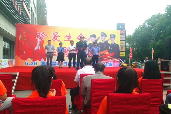 为深入贯彻2016年全省禁毒工作会议、市禁毒委全会精神,提高全民禁毒意识和自觉抵制毒品的能力,6月26日,荷塘区 “6.26”国际禁毒日大型宣传活动在大润发广场举行,该活动以“全民参与禁毒,构建平安荷塘”为主题。市政府秘书长郑剑,市公安局副局长凌亚,以及区领导尹念群、成良池参加活动。