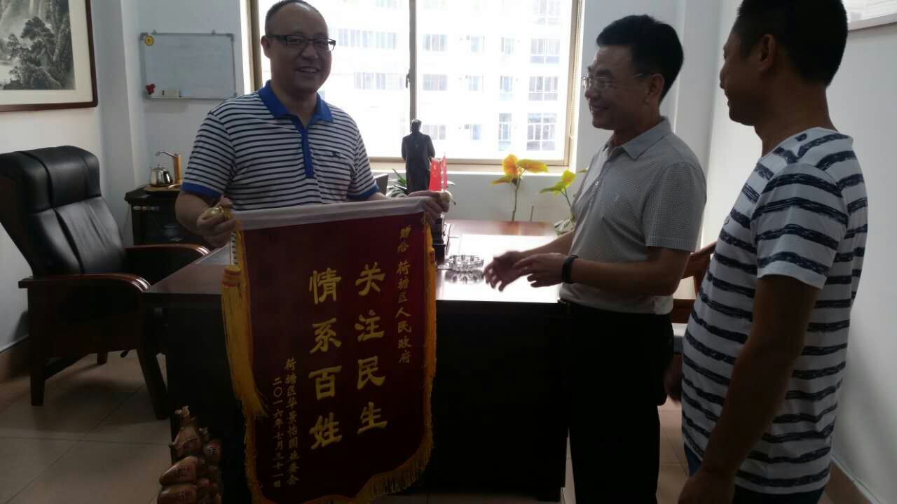 8月3日上午,区政府办主任文韶松代表区政府接受了金山街道办事处晏家湾社区华景怡园小区业主代表送来的“关注民生,情系百姓”锦旗。这是怎么一回事,锦旗的背后有什么故事呢?