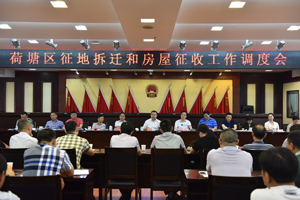 9月5日,荷塘区召开征地拆迁和房屋征收工作调度会,研究近期征地拆迁和房屋征收工作情况,重点调度集体土地征地拆迁工作,南岳岭、上月塘片区棚改三期腾房交钥匙工作和一、二期征收扫尾工作。区委书记邬凌云出席会议并讲话,区委副书记、代区长王利波主持会议,区领导何恒仁、胡开元、肖支前、尹念群、刘伟、张赐华、刘国梁、赖晓智、欧阳权参加会议。