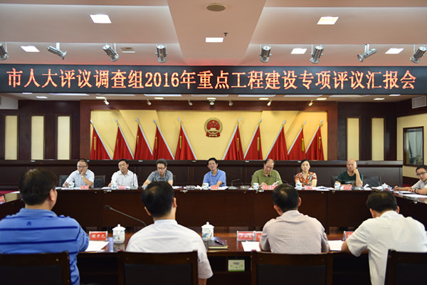 王利波向市人大评议调查组汇报我区重点工程建设情况