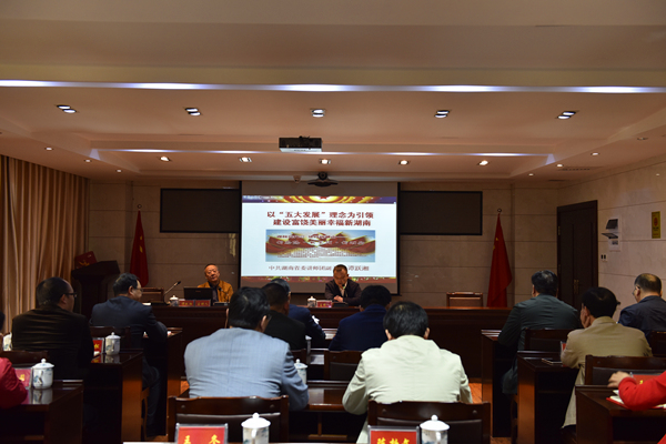 会上,谭跃湘围绕《以五大发展理念为引领,建设富饶美丽新湖南》这一主题,从“五大发展理念”的形成基础、“五大发展理念”的现实指向、“五大发展理念”的实践要求等方面进行了深入浅出的讲解。
