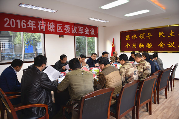 会议听取了金山街道办事处、荷塘月色管委会负责人就党管武装工作的述职报告;区人武部部长胡志飞对2016年度武装工作进行了汇报;区委常委、区人武部政委欧阳权提请了武装工作中存在问题。