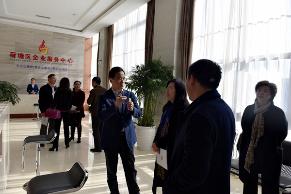 朱皖一行实地考察了我区企业服务中心,听取了企业服务中心运营情况、工作进展、科技成果转移转化等情况介绍。朱皖对近年来荷塘区在加快科技成果转移转化推动产业转型升级,促进区域经济发展所做的工作给予了高度肯定。她强调,政府各部门要积极探索科技成果转化新机制,将市场配置资源的基础作用和政府的引导作用结合起来,以企业为主体,市场为导向,聚焦产业特色,以科技成果转移转化支撑产业发展,促进科技与经济的结合。