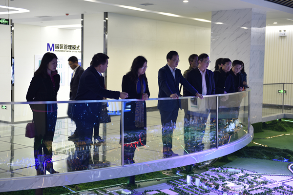 朱皖一行在一片“实力新荷塘”主阵地鸟瞰图前听取介绍