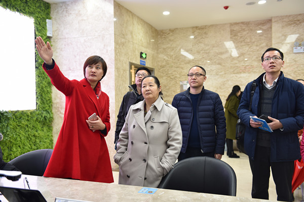 在区政务服务中心,关冰一行通过听取荷塘区政务中心整体情况汇报、观看视频演示、实操互联网办事流程、咨询百姓办事体验等方式,详细了解了荷塘区“一门式”政务服务工作的开展情况。