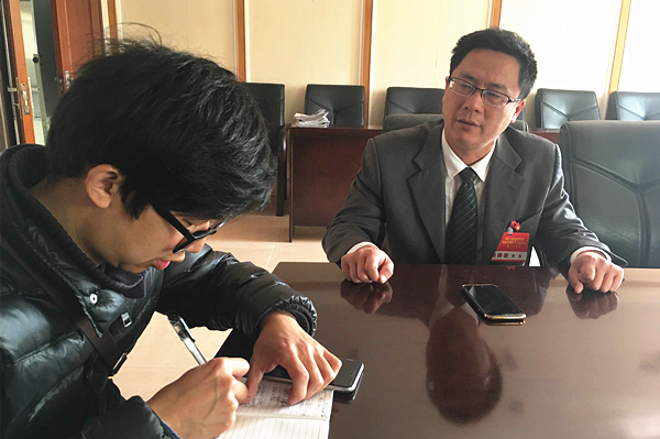 政协委员周逸正在接受晚报记者的采访