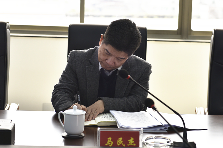 座谈会上,市民政局局长马民杰认真听取汇报并记录