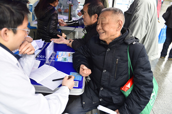 “大妈,您血压有一点高,记得要按时服用降压药。”、“您的腿千万不要受凉,晚上看电视的时候,记得要拿床毯子盖着啊!”查病情、开处方,医护人员们忙得不可开交。