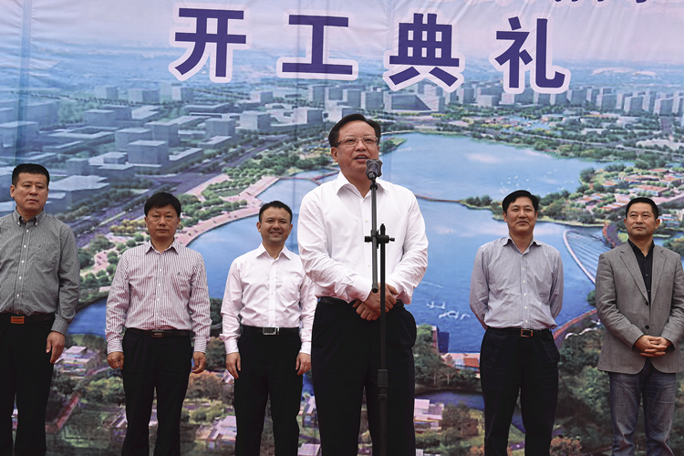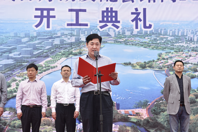 4月8日,荷塘区金山新城日月湖及配套路网PPP项目举行开工典礼,市委副书记雷绍业宣布开工。