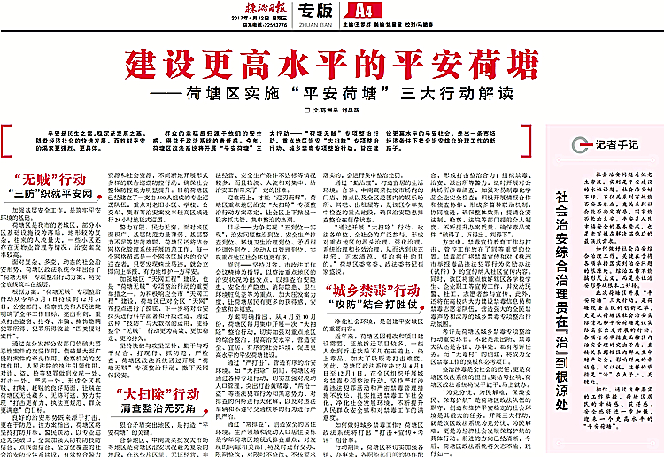 4月12日《株洲日报》专版对荷塘区实施“平安荷塘”三大行动进行解读