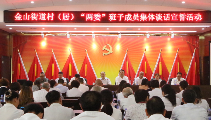 5月12日上午,金山街道举行新一届村居“两委”班子成员集体谈话暨宣誓活动。区委常委、统战部长王顺安出席活动并寄语新一届村居“两委”班子成员。参与本次活动的还有区换届选举指导组成员、街道办事处全体党政领导、新当选的各村居“两委”班子成员以及各村(社区)党员代表和村(居)民代表。