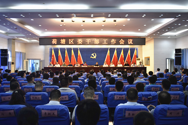 6月8日下午,荷塘区委召开干部工作会议,对近期干部调整情况进行了通报,并部署了当前重点工作。区委书记邬凌云出席会议并讲话,区领导王利波、赖晓智、陈友元、何恒仁、王顺安、崔家盛、刘国梁、欧阳权、郑志富、陈三龙、刘政凯、文韶松在主席台就坐。