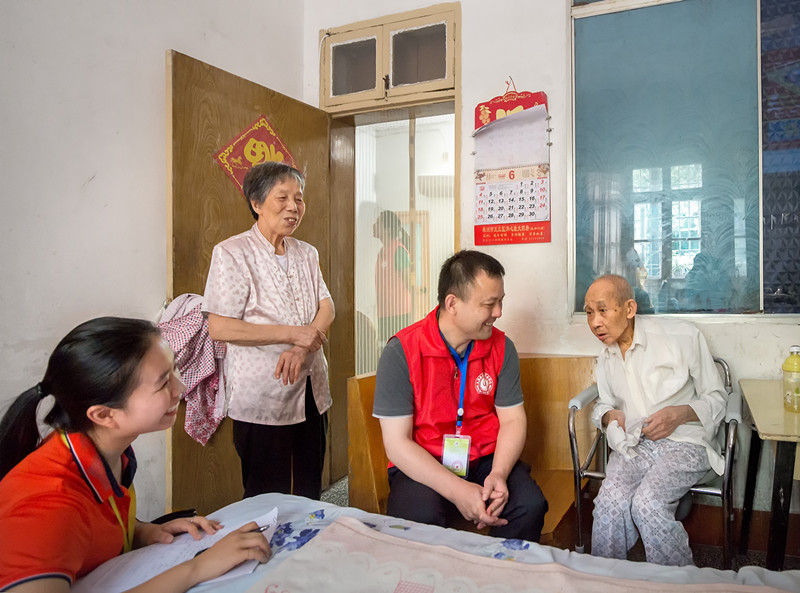 作为1小组的志愿者,区委书记邬凌云来到了老兵黎桂清的家里,黎老今年已经是90岁的高龄。“前些年身体还硬朗得很,可以和小区里的人打打扑克,可是近两年因为脑梗做了几次手术,意识开始模糊,认不清人了。”说话的是黎老的女儿。