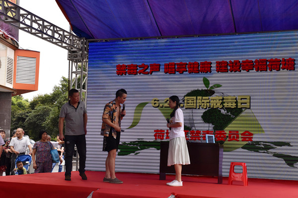 这一幕,发生在6月26日上午,东都步步高前坪,荷塘区2017年“6.26”国际禁毒日宣传活动现场。