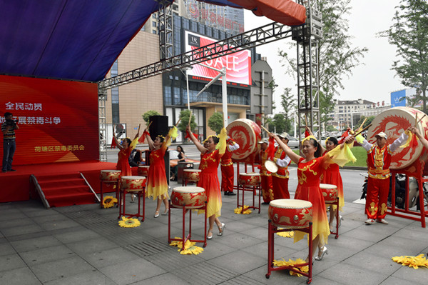 来自公安荷塘分局、区人民法院、区人民检察院、区卫计局、区司法局等单位的工作人员在发放禁毒宣传资料的同时,向广大群众介绍毒品对个人、家庭及社会的严重危害,告诫他们要远离毒品,正确交友,提高识毒防毒意识和能力。