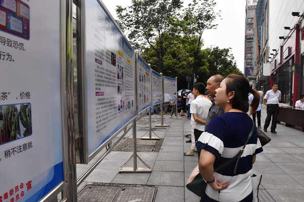 活动现场,图文并茂的禁毒宣传展板吸引了许多过路群众驻足观看,通过展板上生动具体的真实案例了解毒品知识,掌握如何有效预防毒品的方法和措施。
