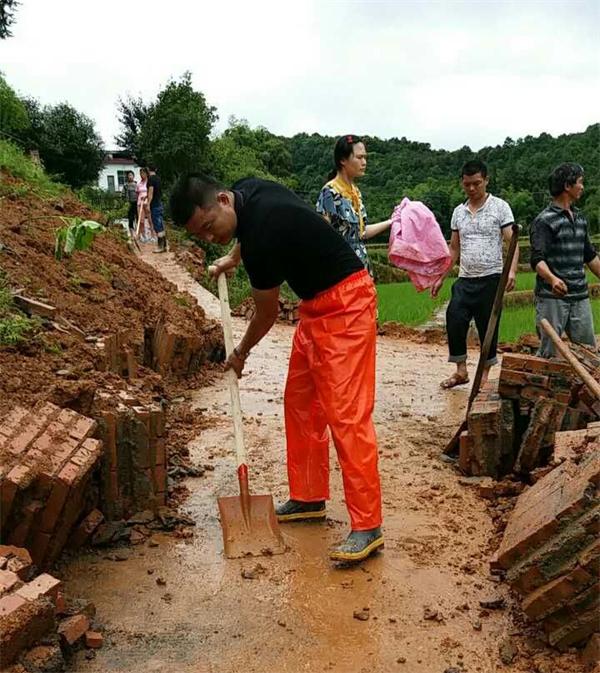顾全大局,暴雨中挥锹铲土固护坡