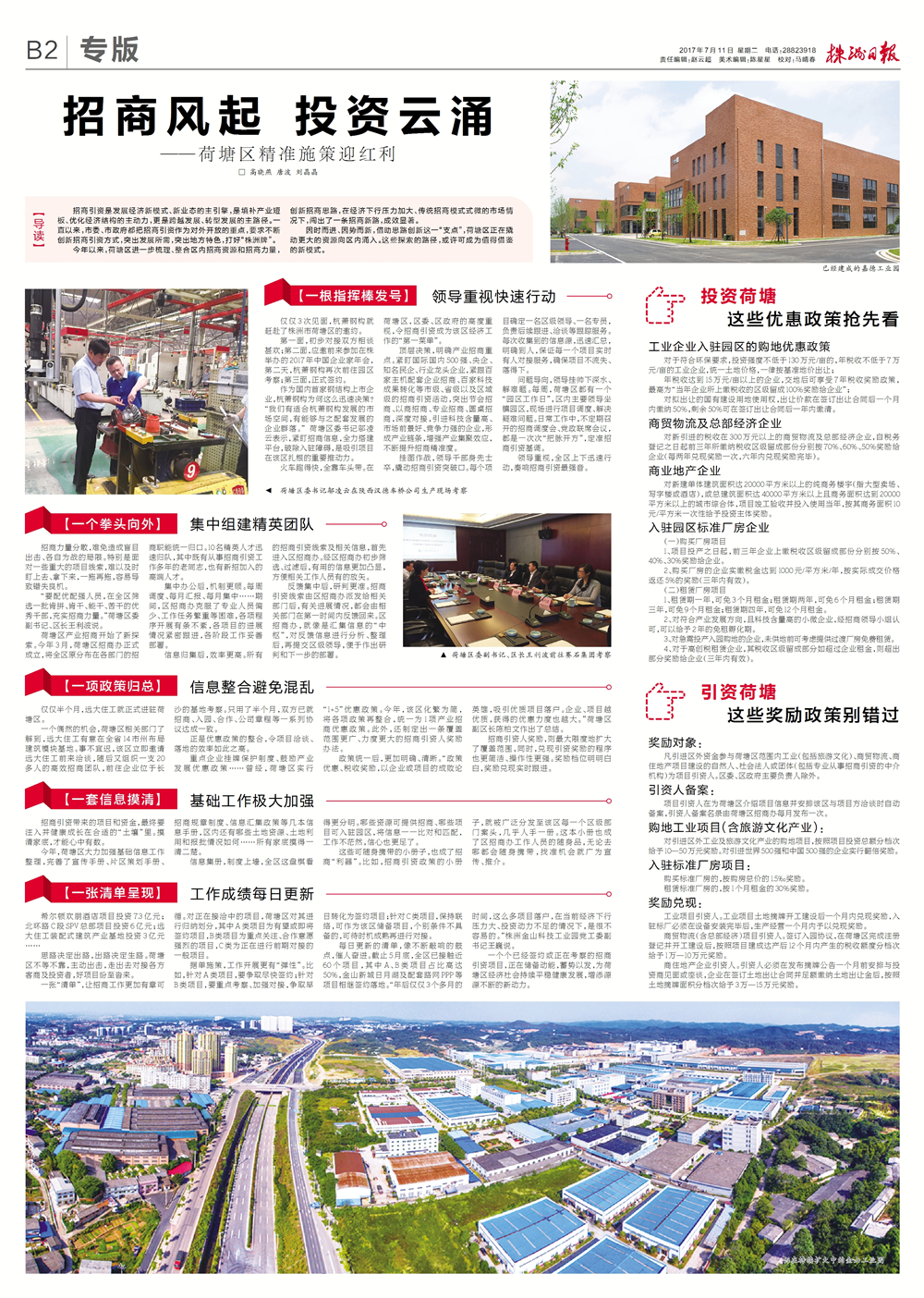 7月11日,《株洲日报》专版报道荷塘区招商工作