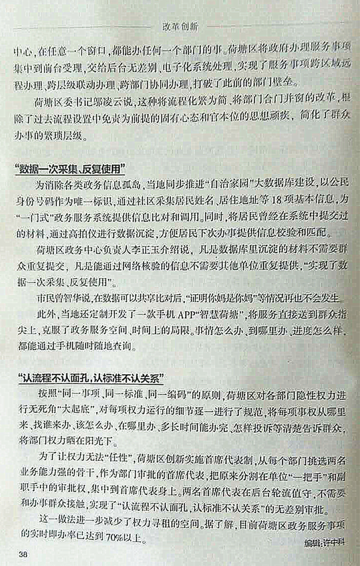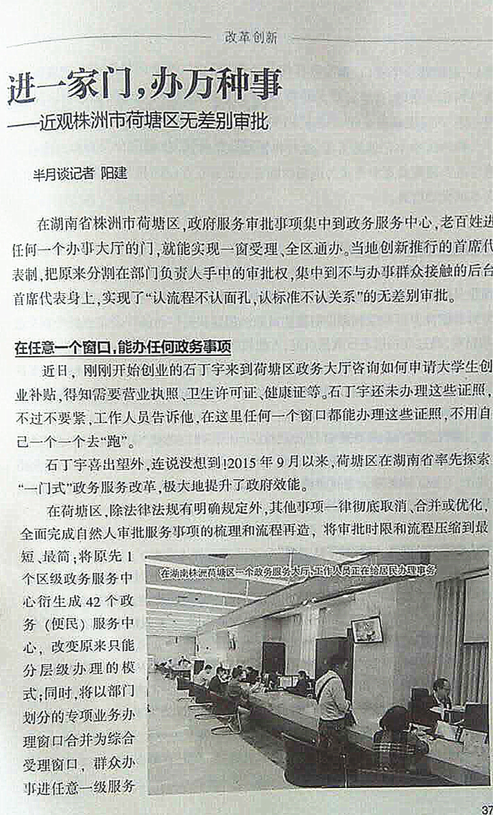 “中华第一刊”《半月谈》长文报道荷塘区政务服务改革工作