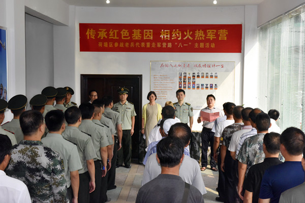 为迎接建军90周年,7月29日,荷塘区组织全区部分参战老兵代表开展“传承红色基因,相约火热军营”主题活动。20多位参加过抗美援朝战争、抗美援越、西沙海战、79年对越自卫反击战的老革命军人来到消防军营,与官兵们共度“八一”建军节。区委副书记赖晓智,区人武部政委何波,副区长余鹏,株洲公安消防支队副政委严路明出席活动。