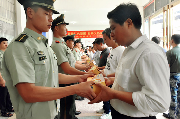 荷塘公安消防大队官兵向参战老兵赠送纪念品