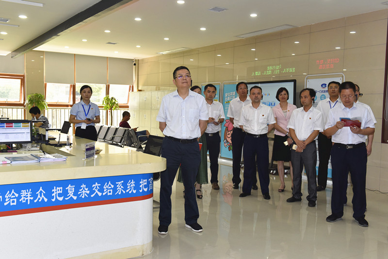 蔡建和一行来到我区金山街道办事处,先后察看了街道政务服务大厅、幸福荷塘工作室和复转军人之家。每到一处,蔡建和都详细地询问了工作开展情况,“政务服务系统如何体现党建工作?”“三社联动如何服务老年人?”“复转军人之家运行如何?”蔡建和一一听取了工作人员的汇报。荷塘区通过“一门式”政务服务改革,在充分简政放权的同时,将党建内容纳入服务平台,运用“大数据”推进基层党建管理创新,得到了蔡建和的高度肯定。